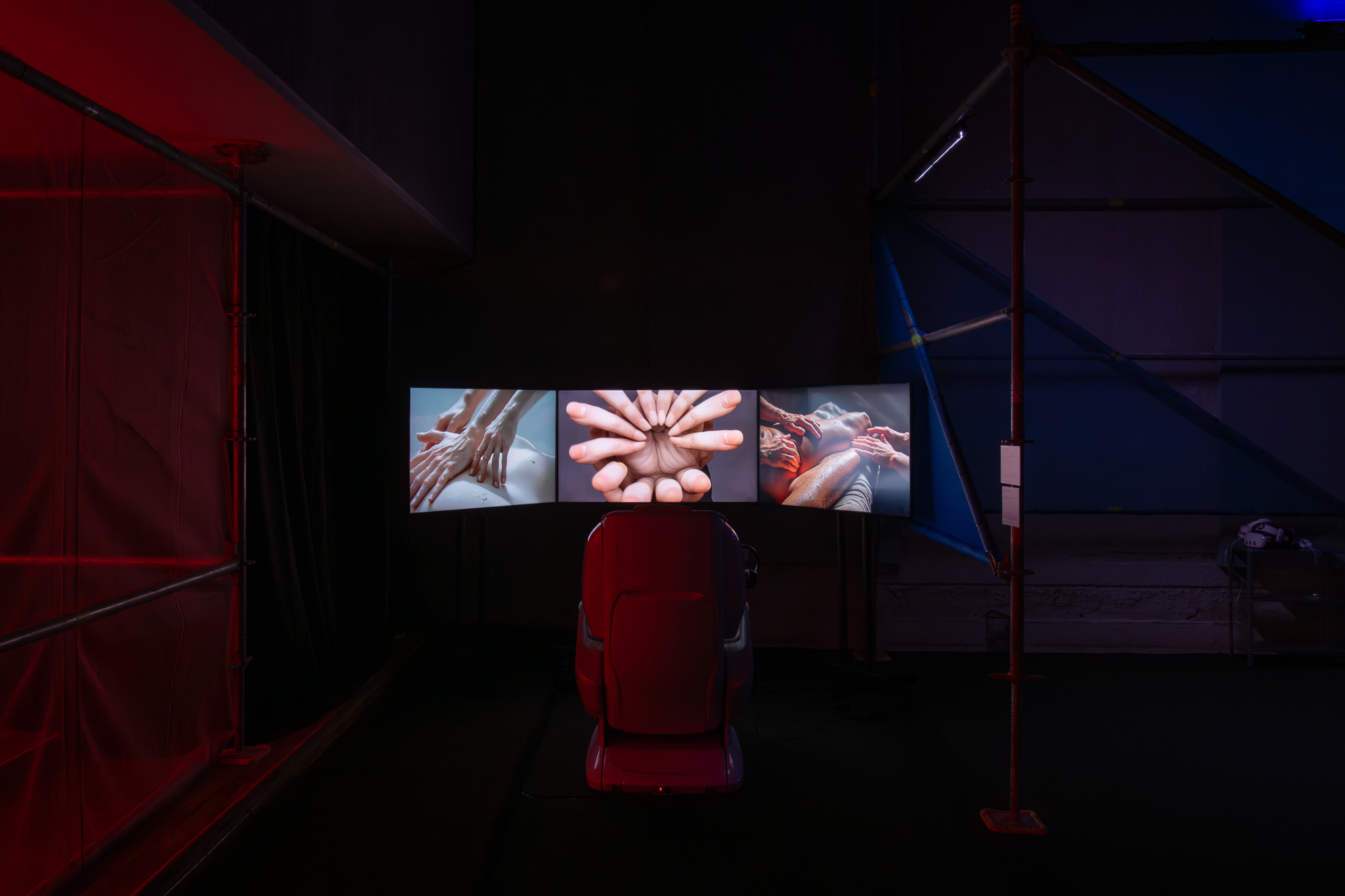Fingers multiply, joints are false, movement is algorithmic. Familiar gestures — massage, stroking, holding — become unreliable. The haptic “uncanny valley” emerges: a visible touch that the body does not recognize. Therapeutic touch turns into an industrial simulacrum, offering the promise of comfort and the rhetoric of efficiency. The politics of touch are rewritten here by statistics; intimacy is produced by systems that learn from data but know nothing of pain.
